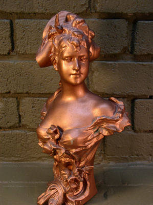 1890's ART NOUVEAU WOMANS METAL BUST 10 1/2" TALL
