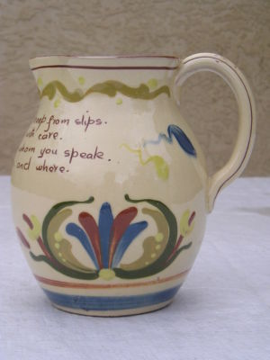 Lg Antique Devon/Torquay Motto Ware Jug Scandi Design Keep Your Lips From Slips