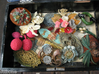 Antique Oriental Jewelry Box with Lot of Pins Inside (14)