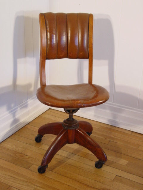 Title (ebay affiliate link): VINTAGE 1930S MACHINE AGE DESK CHAIR LEATHER SEAT