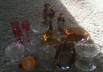 Title (ebay affiliate link): Wholesale lot. Candy dishes, figurines, decorative 16 pieces. Depression glass.