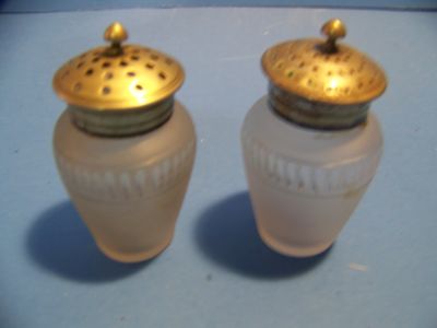 vintage depression glass salt and pepper, frosted glass, metal top