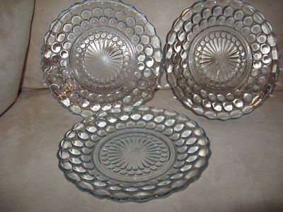 Title (ebay affiliate link): Blue "Bubble" Bulls eye Provincial Anchor Hocking depression glass plates