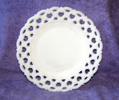 Westmoreland 8 1/2" Milk Glass " Forget Me Not " Lace Plate Stamped on Backl