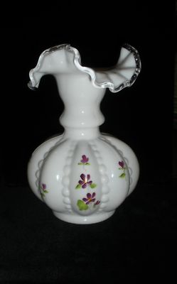 Title (ebay affiliate link): Fenton Hand-painted Violets & Signed Silvercrest Milk Glass Beaded Melon Vase