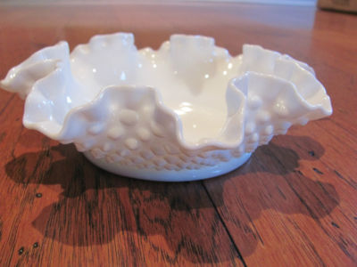 FENTON WHITE HOBNAIL MILK GLASS BOWL RUFFLED TOP