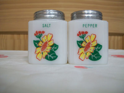 Title (ebay affiliate link): VINTAGE TIPP CITY MILKGLASS YELLOW COSMOS SALT PEPPER SPICE SHAKER JAR BOTTLE