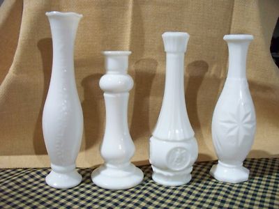 Lot of 4 Milk Glass Vases All different designs