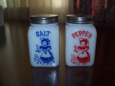 Vintage Milk Glass GARDENING GIRL Salt & Pepper Shakers
