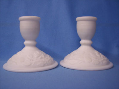 PAIR IMPERIAL WHITE MILK GLASS CANDLESTICK HOLDERS
