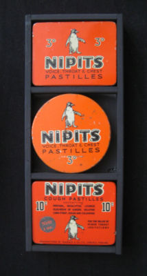 3 Old NIPITS Pastilles tins (+ Display Shelf)