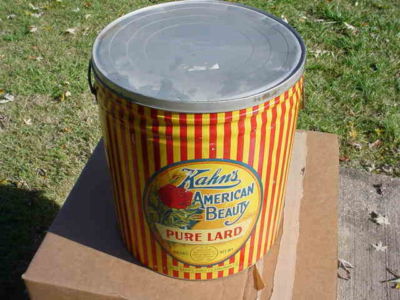 Title (ebay affiliate link): VINTAGE KAHNS AMERICAN BEAUTY PURE LARD 50LB HANDLED TIN WITH TOP L@@@K