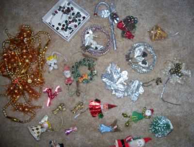 Title (ebay affiliate link): Vintage Lot of 1930's Christmas Tree Items Wreath Foil Items Angels Tiny bulbs