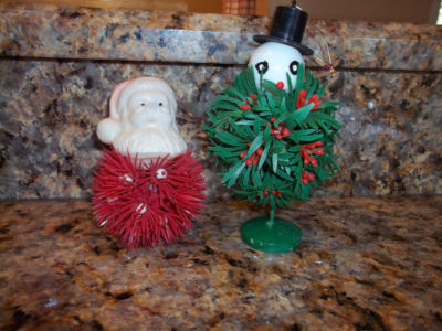 Title (ebay affiliate link): Vintage plastic Santa Claus head pom pom snowman pine cone ornament Christmas