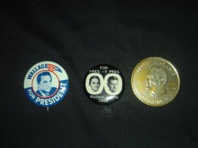 Title (ebay affiliate link): Lot of 3 George C. Wallace Campaign Buttons and "Freedom Dollar"
