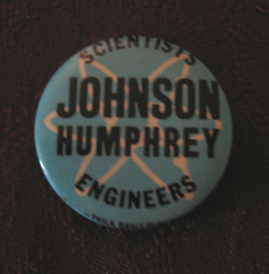 RARE VINTAGE CELLULOID CAMPAIGN PINBACK SCIENTISTS ENGINEERS JOHNSON/HUMPHREY