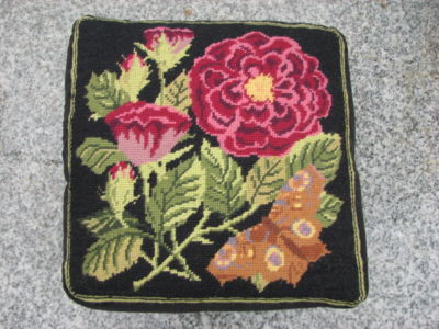 Title (ebay affiliate link): VINTAGE NEEDLEPOINT FLORAL FOOTSTOOL WITH WOODEN FEET