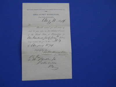 Title (ebay affiliate link): Indian Wars Navy 1874 Document Pottsville Pennsylvania PA 74 Pay Director Old PA