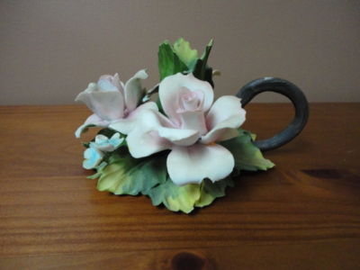 Title (ebay affiliate link): Capodimonte Fine Porcelain Floral Candle Holder w/ Handle NR flowers