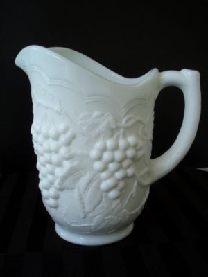 IMPERIAL GLASS LARGE MILK GLASS PITCHER - GRAPE PATTERN
