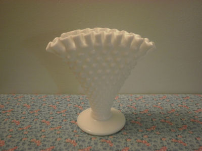 Fenton Milkglass Hobnail 6" Fan Vase.