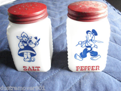 Vintage Dutch Boy, Milk Glass, Salt & Pepper Shakers