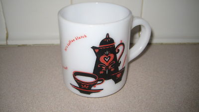 VINTAGE HAZEL ATLAS MILK GLASS "LET'S KAFFEE KLATCH" MUG
