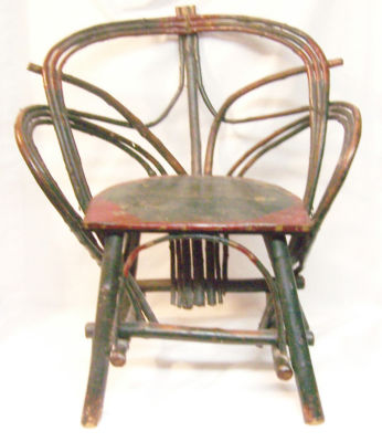 Title (ebay affiliate link): Antique Child Size Twig Chair Green Red Paint Kid Size or Antique Doll Display