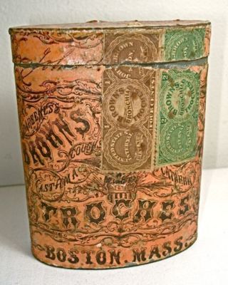 Title (ebay affiliate link): Antique Victorian Advertising Tin Brown's Bronchial Troches Tin Original Stamps