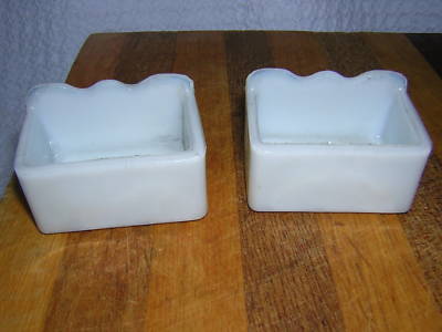 ANTIQUE VINTAGE 2 MILK GLASS BIRD CAGE FOOD CUPS NICE
