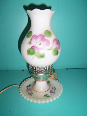Title (ebay affiliate link): VTG Antique Table Light White Milk Glass Painted Flowers Lamp Shades Hurricane