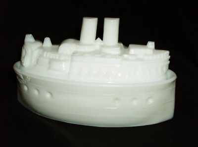 LARGE OPALESCENT WHITE MILK GLASS TWIN STACK SHIP