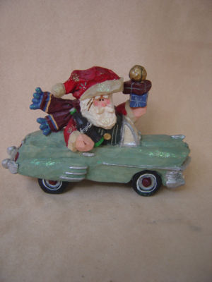 1998 COCA-COLA KURT S. ADLER FOLK ART FIGURINE SANTA CLAUS IN GREEN CAR