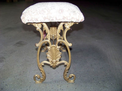 Antique Cast Iron Footstool bench ottoman, French Fleur De Lis center piece