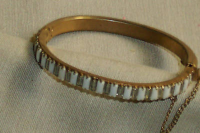 ^^vintage BAQUETTES of MILK GLASS & RHINESTONE BRACELET