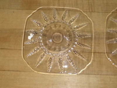 Title (ebay affiliate link): Set of 6 vintage clear moonstone? glass square plates 6" moonstone