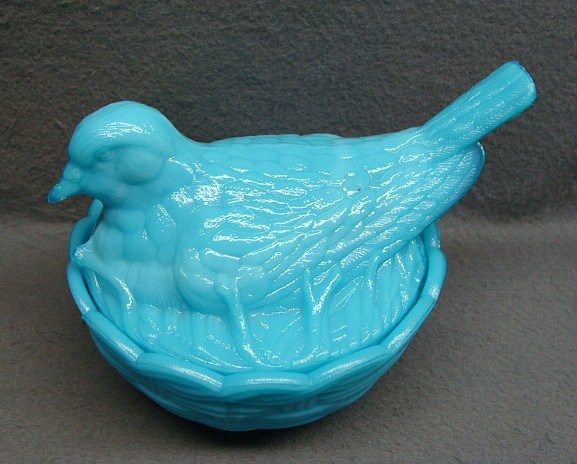Blue Opaque Milk Glass Victorian Pigeon On Nest NR