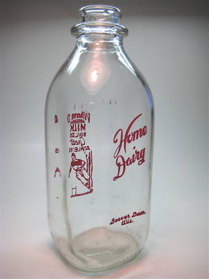 Vintage HOME DAIRY 1 QT Milk Bottle 9" Football graphic