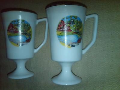 2 Vintage Milk Glass Cypress Garden Florida Coffee Cups