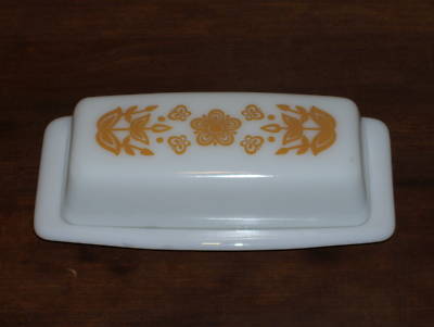 Vintage Pyrex Gold Floral Design Milk Glass Butter Dish