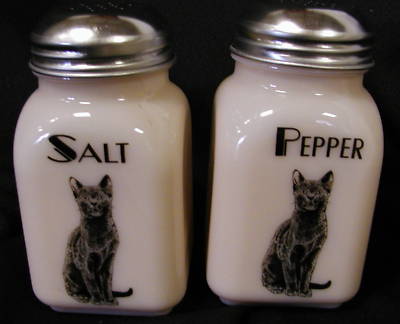 Pink Milk Glass Salt & Pepper Shaker Set w/ Black Cats