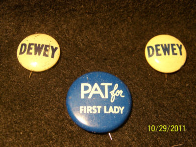 Title (ebay affiliate link): Vintage Political Pins - 2 "Dewey" and 1 "Pat for First Lady"