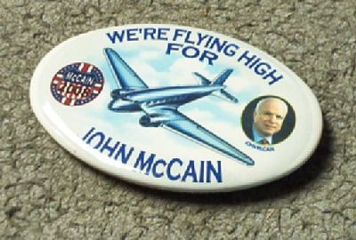 Title (ebay affiliate link): 2008 We're Flying High for JOHN McCAIN Guardfrog Political Campaign Button PIN