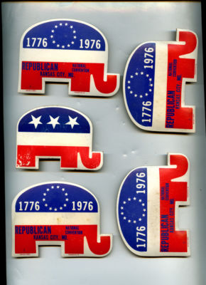 Title (ebay affiliate link): REPUBLICAN ELEPHANTS, RED WHITE BLUE padded plastic five pins