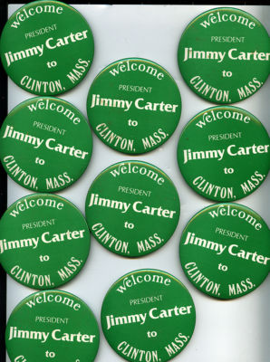Title (ebay affiliate link): WELCOME PRESIDENT JIMMY CARTER TO CLINTON, MASS. 3 in. dia green and white