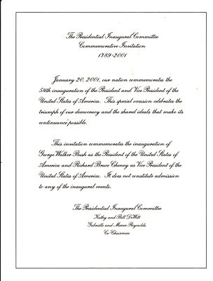 Title (ebay affiliate link): 2001 PRESIDENTIAL INAUGURAL COMM. INVITATION & PHOTO