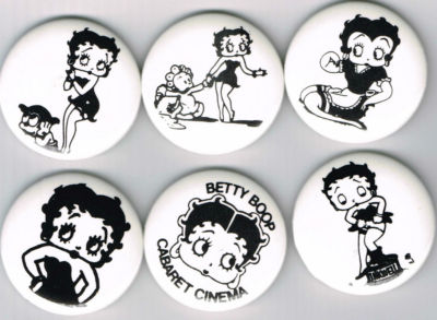 Title (ebay affiliate link): SET OF 6 BETTY BOOP PINS, PINBACK BUTTONS #302