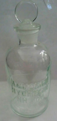 Vintage Antique Glass Medical Bottle Ammonium Hydroxide NH4OH Stopper Wheaton