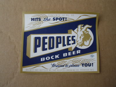 PEOPLE'S BOCK 12 OZ. BEER LABEL-OSHKOSH,WIS.