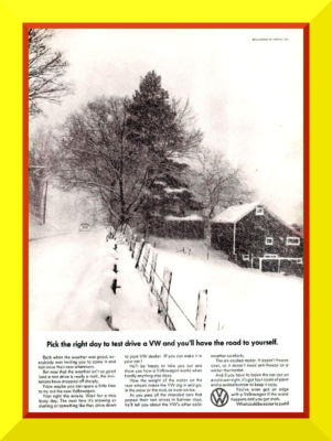 Title (ebay affiliate link): 1967 VOLKSWAGEN VW BEETLE photo print ad VINTAGE snow CHRISTMAS GIFT?